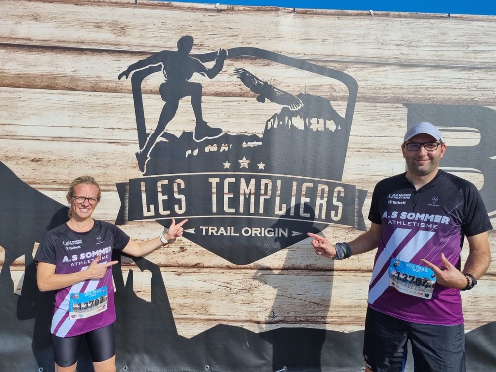 VO 2 trail du festival des Templiers 17,7 km 700 D+ : Noémie Mayet 2h35'31'' et Aurélien Mayet 2h35'33''